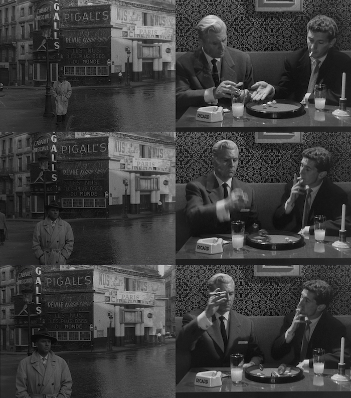 In the moments between night and day, by the dawn's early light, in Montmartre, that hallowed, hilly zone of solemnity and sleaze in Paris, resting somewhere between the Heaven of the Basilica of the Sacré-Cœur at its highest point and below it, the Hell of nightclubs, cheap hotels, cafes, whorehouses and gambling dens, the distinguished trench-coat-adorned silver-haired old fox Bob Montagné (Roger Duchesne) takes one last roll of the dice.